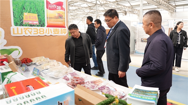 最后,进行产品品鉴,顶花带刺的曲堤黄瓜、济阳区现代农业产业园优质富硒面粉做成的面食类产品、山东首家富硒羊肉等优质农产品一一亮相,赢得一致好评。在科研示范基地及农业信息技术与智能装备专题展厅,与会人员实地考察了智慧农业技术在农业生产中的实际应用效果。